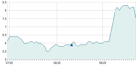 | 11/01/2023 | +0,10 / +6,67% | 1,50 | 1,60 | 1,50 | 1,60 | 1,60 | 1,60 | 99.800 |   |