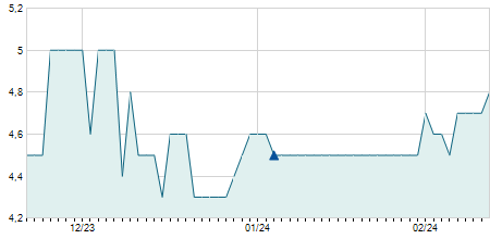 | 19/03/2024 | 0,00 / 0,00% | 4,60 | 4,60 | 4,60 | 4,60 | 4,60 | 2,80 | 0 |   |