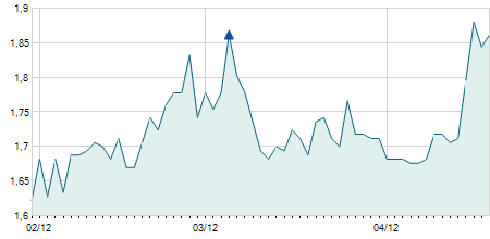 | 05/11/2021 | +0,40 / +4,44% | 9,20 | 9,50 | 9,20 | 9,40 | 9,40 | 9,40 | 26.600 |   |
