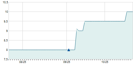 | 09/10/2020 | +0,40 / +13,33% | 3,40 | 3,40 | 3,40 | 3,40 | 3,40 | 3,40 | 900 |   |