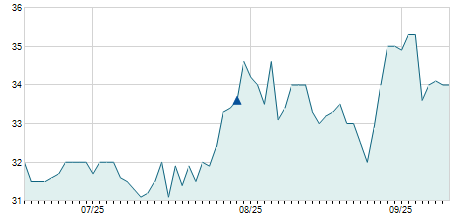 | 08/10/2025 | +3,40 / +9,83% | 38,00 | 38,00 | 38,00 | 38,00 | 38,00 | 38,00 | 100 |   |