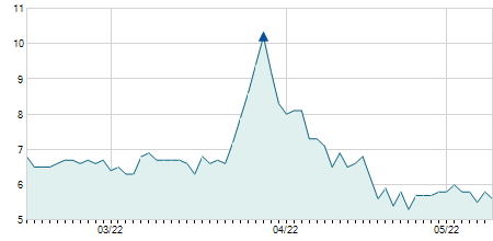 -0,70 / -4,67%