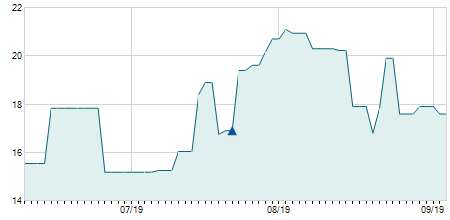 | 14/08/2017 | +0,60 / +2,67% | 23,10 | 23,10 | 23,10 | 23,10 | 23,10 | 9,71 | 100 |   |