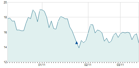 | 07/11/2014 | -0,20 / -7,14% | 2,70 | 2,80 | 2,60 | 2,60 | 2,80 | 2,60 | 57.700 |   |