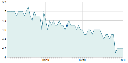 | 05/02/2010 | -0,20 / -1,89% | 10,50 | 10,50 | 10,10 | 10,40 | 10,30 | 10,40 | 7.450 |   |