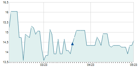 | 15/01/2010 | -0,30 / -2,52% | 12,00 | 12,00 | 11,50 | 11,60 | 11,90 | 11,60 | 20.570 |   |