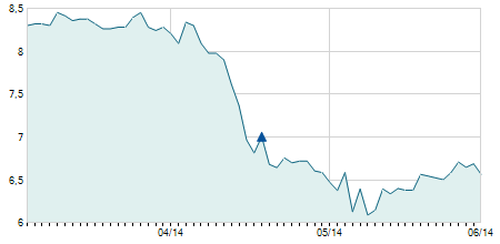 | 08/04/2025 | -0,30 / -6,38% | 4,30 | 4,40 | 4,30 | 4,40 | 4,40 | 4,40 | 3.600 |   |