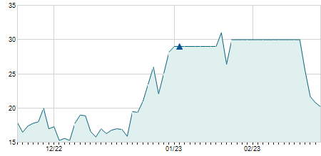 Giá đóng cửa ngày 22/02/2021