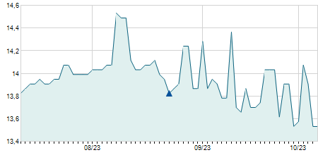 | 26/01/2024 | -1,60 / -14,68% | 12,50 | 12,50 | 9,30 | 9,30 | 10,20 | 9,30 | 1.500 |   |