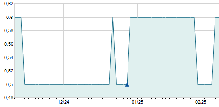 | 27/12/2007 | -0,60 / -1,32% | 45,00 | 46,50 | 45,00 | 45,00 | 45,00 | 45,00 | 10.500 |   |