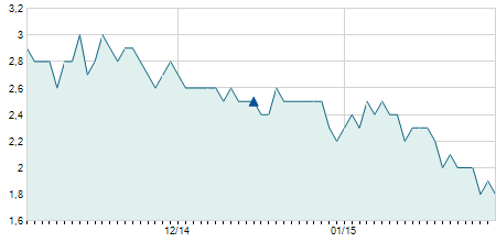 | 26/02/2008 | -0,40 / -1,38% | 31,90 | 31,90 | 28,00 | 28,60 | 28,60 | 28,60 | 10.900 |   |