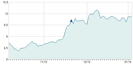 | 05/06/2012 | +0,40 / +4,71% | 8,50 | 8,90 | 8,30 | 8,90 | 8,84 | 1,95 | 14.400 |   |