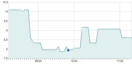| 28/02/2012 | -0,40 / -5,06% | 8,10 | 8,10 | 7,50 | 7,50 | 7,95 | 1,54 | 27.800 |   |