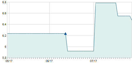 | 07/05/2012 | +0,70 / +6,67% | 11,20 | 11,20 | 11,20 | 11,20 | 11,20 | 2,46 | 1.300 |   |