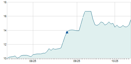 | 10/11/2010 | +0,20 / +1,36% | 15,00 | 15,00 | 14,80 | 14,90 | 14,91 | 2,75 | 7.600 |   |