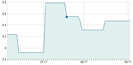 | 09/08/2011 | -0,60 / -8,22% | 7,00 | 7,00 | 6,70 | 6,70 | 6,80 | 1,29 | 14.400 |   |
