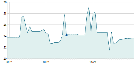 | 27/09/2024 | -0,10 / -2,04% | 5,00 | 5,00 | 4,80 | 4,80 | 4,88 | 4,80 | 86.800 |   |
