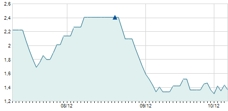 | 29/09/2011 | +0,10 / +0,67% | 15,10 | 15,10 | 15,10 | 15,10 | 15,10 | 4,16 | 10.000 |   |
