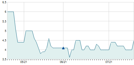 | 06/10/2020 | +2,80 / +14,97% | 21,50 | 21,50 | 21,50 | 21,50 | 21,50 | 18,49 | 100 |   |