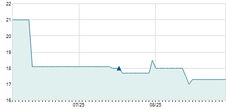 | 17/12/2020 | 0,00 / 0,00% | 23,00 | 24,00 | 23,00 | 24,00 | 23,50 | 19,88 | 1.000 |   |