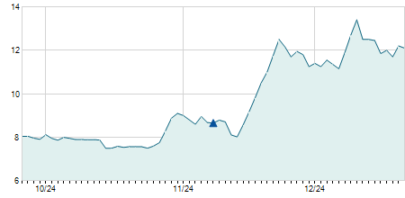 | 12/05/2015 | -0,70 / -6,67% | 11,30 | 11,40 | 9,80 | 9,80 | 10,96 | 9,80 | 14.000 |   |