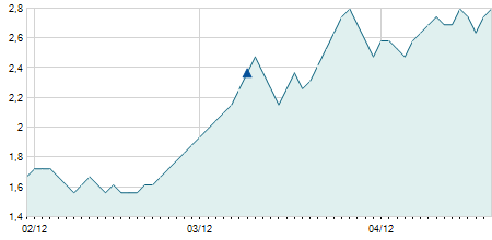 | 28/07/2008 | +0,10 / +0,58% | 16,50 | 17,70 | 16,50 | 17,20 | 17,20 | 13,39 | 44.100 |   |