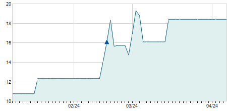 | 04/01/2022 | +0,61 / +6,50% | 9,39 | 10,00 | 9,35 | 10,00 | 9,83 | 8,02 | 101.000 |   |