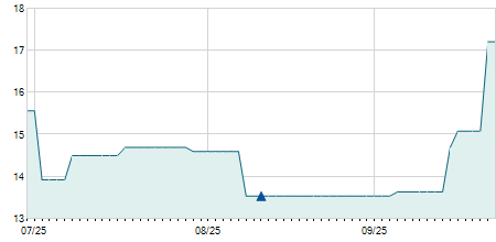 | 10/08/2021 | +0,02 / +0,29% | 6,86 | 6,89 | 6,86 | 6,88 | 6,88 | 5,23 | 17.600 |   |