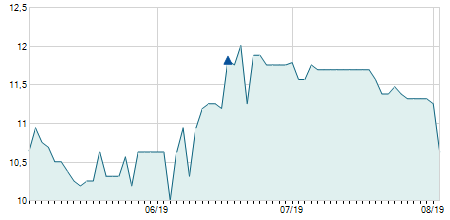 | 10/08/2022 | +0,14 / +1,71% | 8,20 | 8,52 | 8,10 | 8,34 | 8,34 | 7,47 | 48.500 |   |